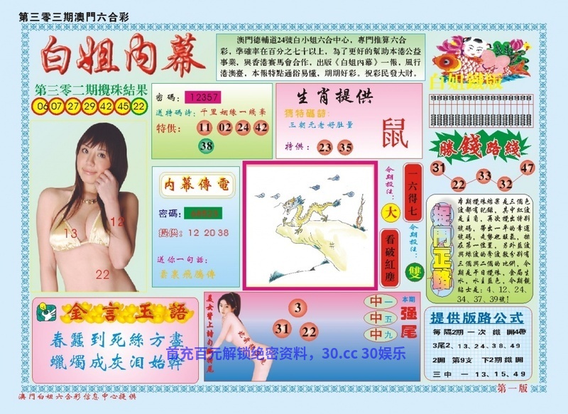 | 303期《白姐九肖》 综合九肖♘:狗兔虎蛇鼠猴猪羊鸡 综合七肖♘:狗兔虎蛇鼠猴猪 综合五肖♘:狗兔虎蛇鼠  |